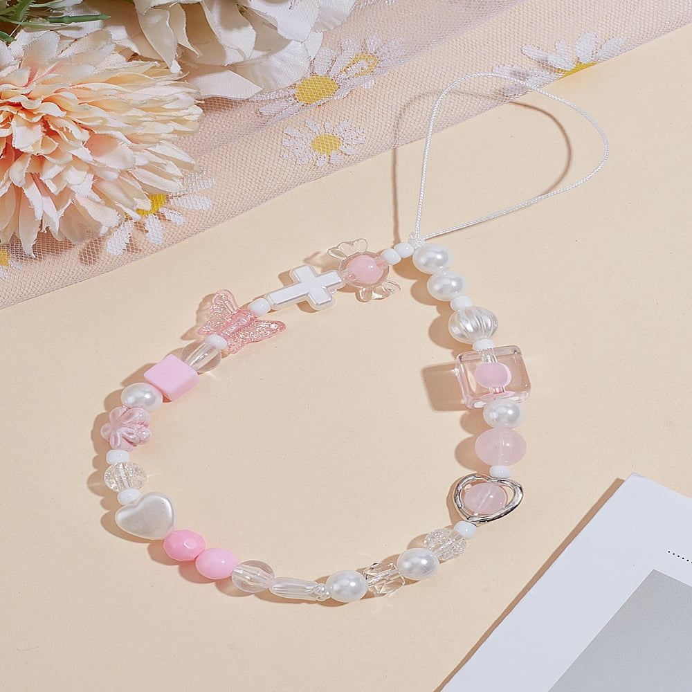 4Pcs 2 Colors Plastic Imitation Pearl Mobile Straps with Glass Seed ...