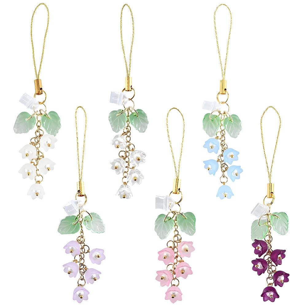 6Pcs 6 Colors Acrylic & Glass Mobile Straps Flower with PVC Mobile ...