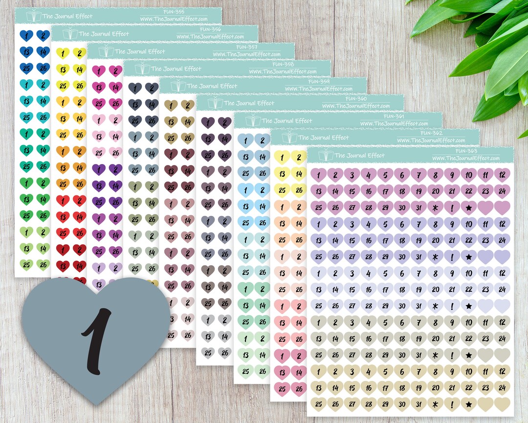 HEART DATE Dot Sticker, Black Numbers, Label Planner Stickers for Erin ...
