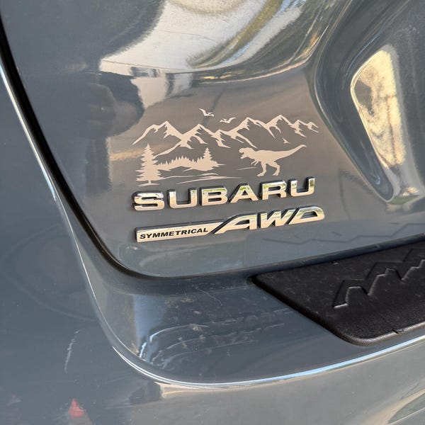 Jurassic Overland Car Sticker – Mountain Scene Dino Decal for Subaru ...