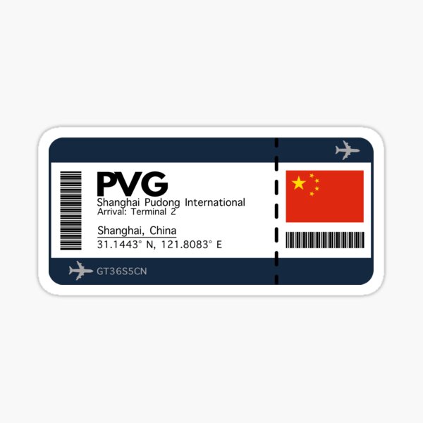 "PVG - Shanghai airport code" Sticker for Sale by mattpanta | Redbubble