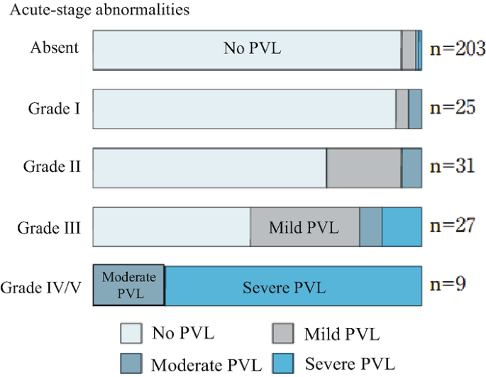 Periventricular leukomalacia (PVL) grades determined on the basis of ...