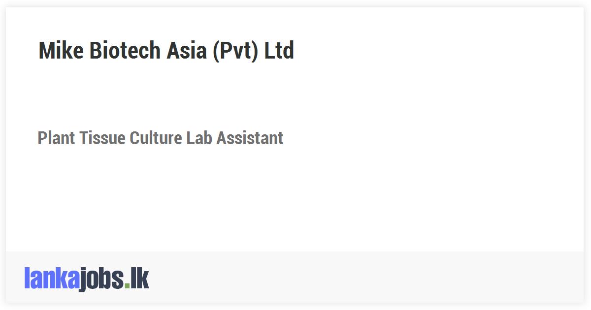 Plant Tissue Culture Lab Assistant - Mike Biotech Asia (Pvt) Ltd