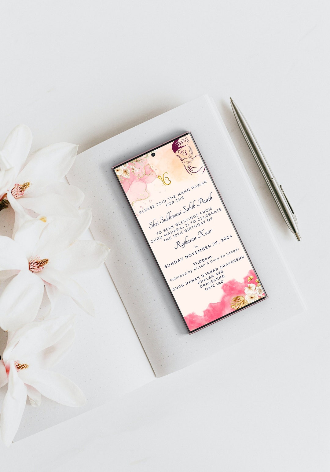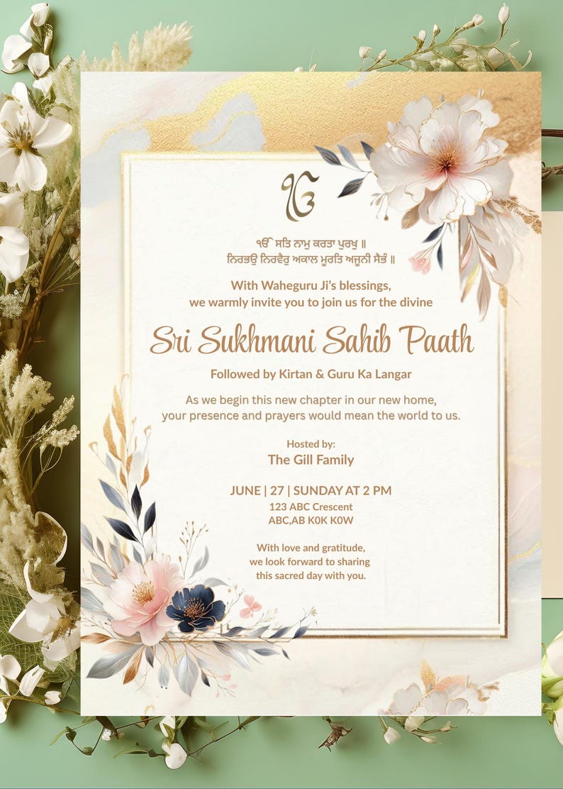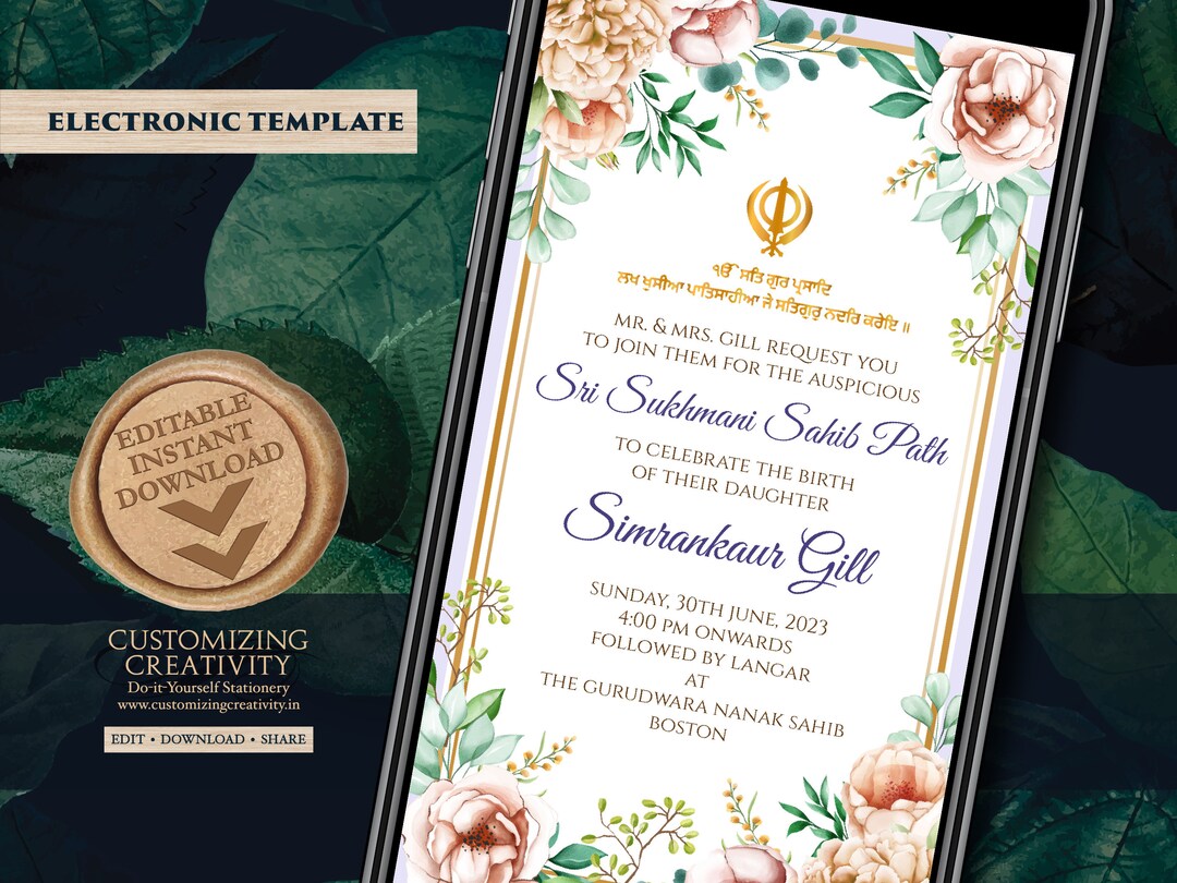 Editable Floral Sukhmani Sahib Path Digital Invitation, Sukhmani Sahib ...