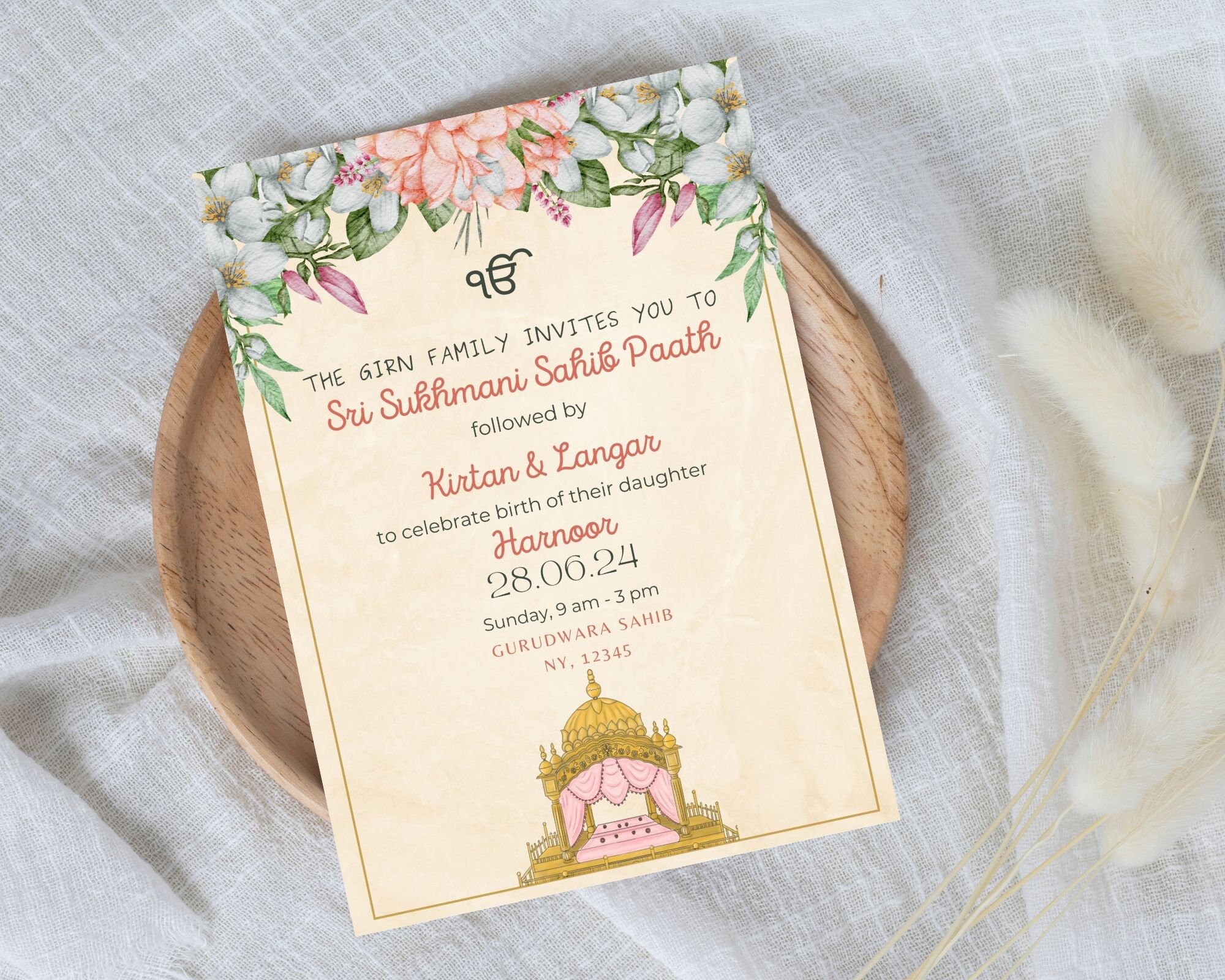 Sukhmani sahib path Invitation Customizable Template DIY | Sunmily