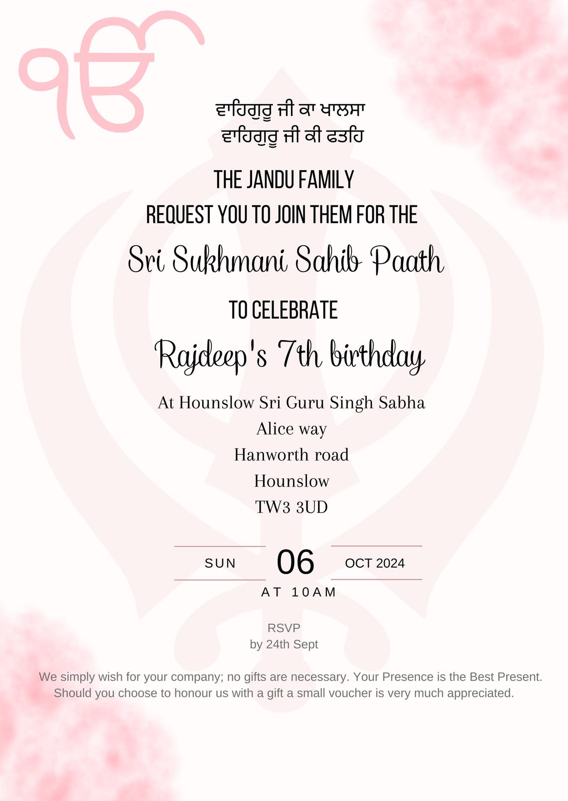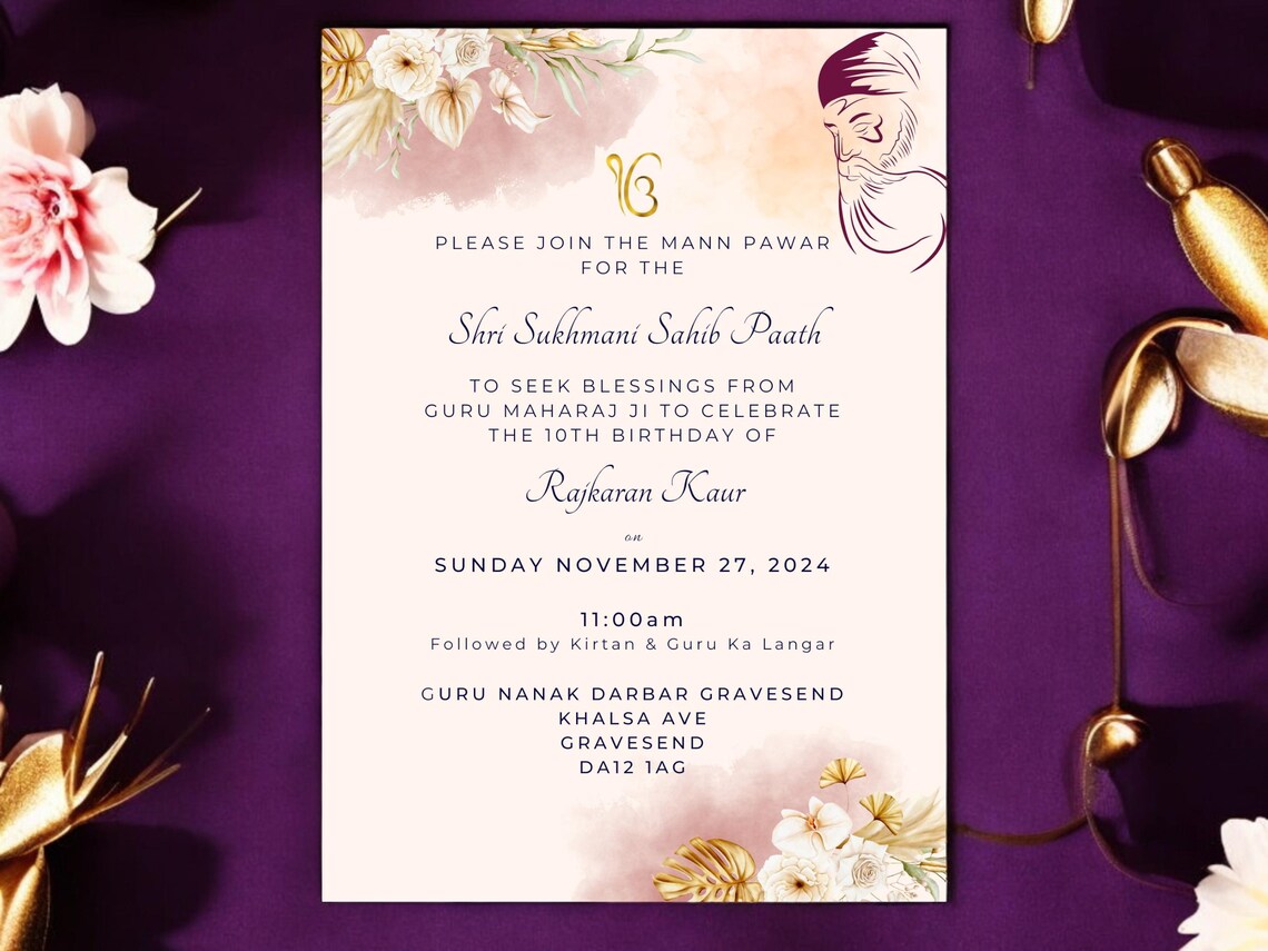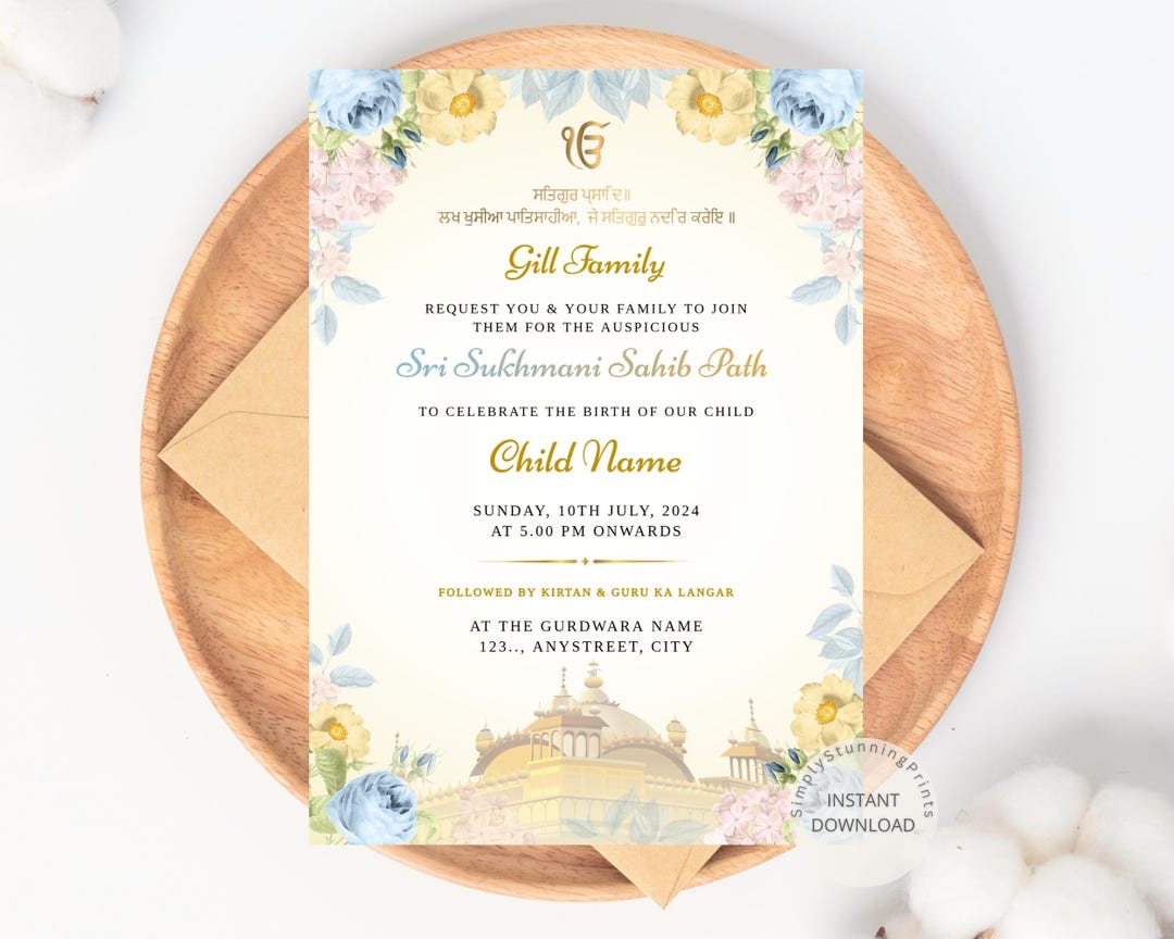 First Birthday Invitation, Sukhmani Sahib Invite, Digital Akhand Path ...