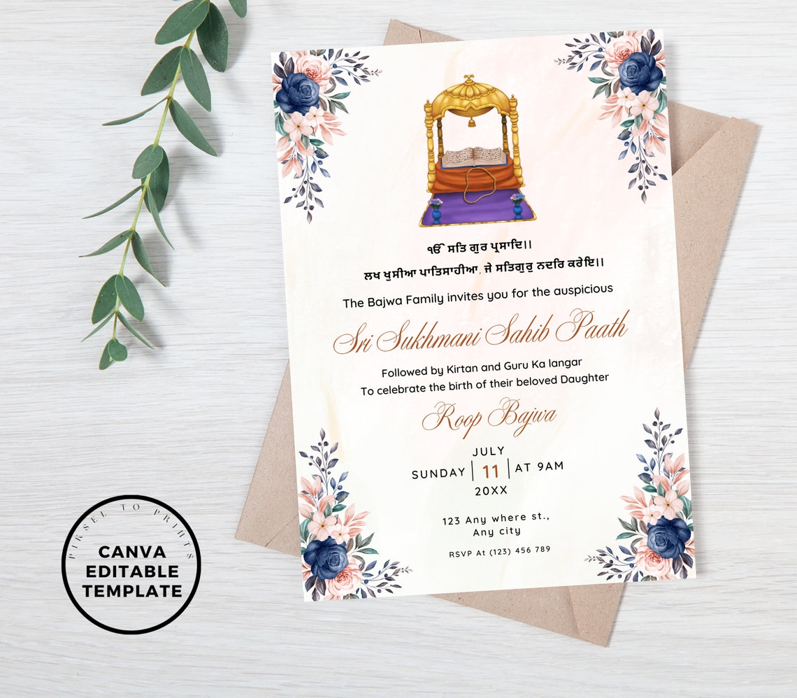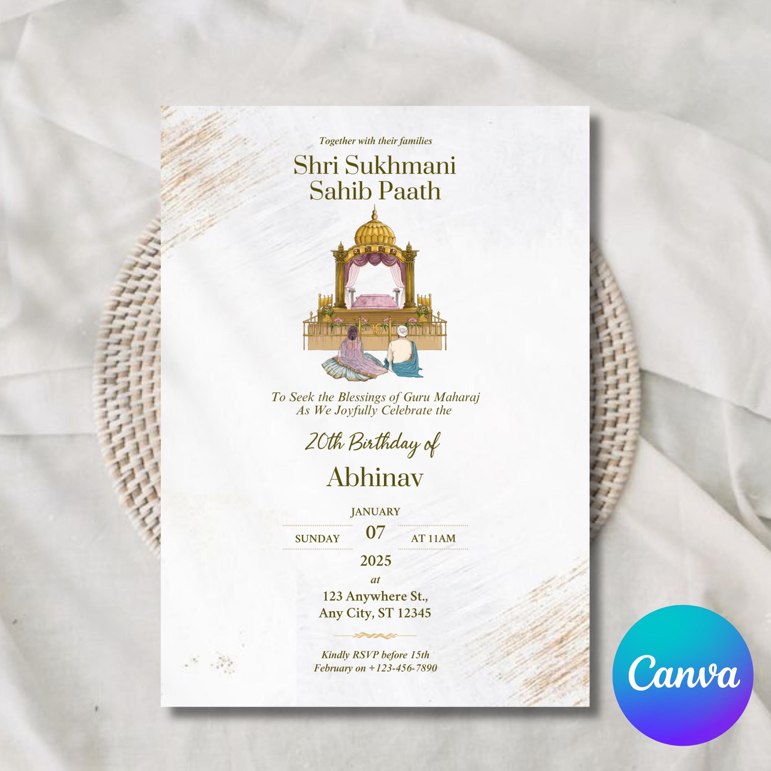 Sukhmani Sahib Paath Invitation Sikh Invitations Digital, Editable, DIY ...