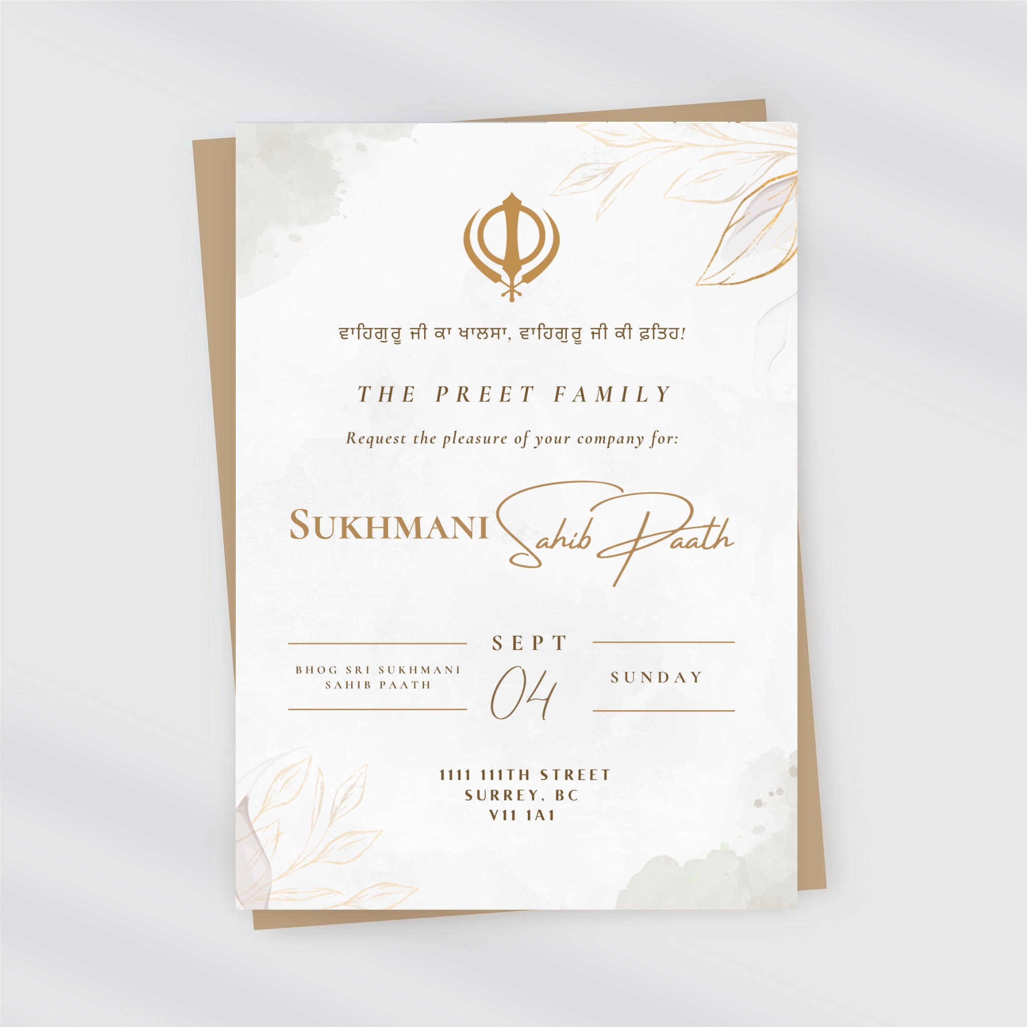 Sukhmani Sahib Paath Invitation | Customizable | Sikh Card | Sukhmani ...