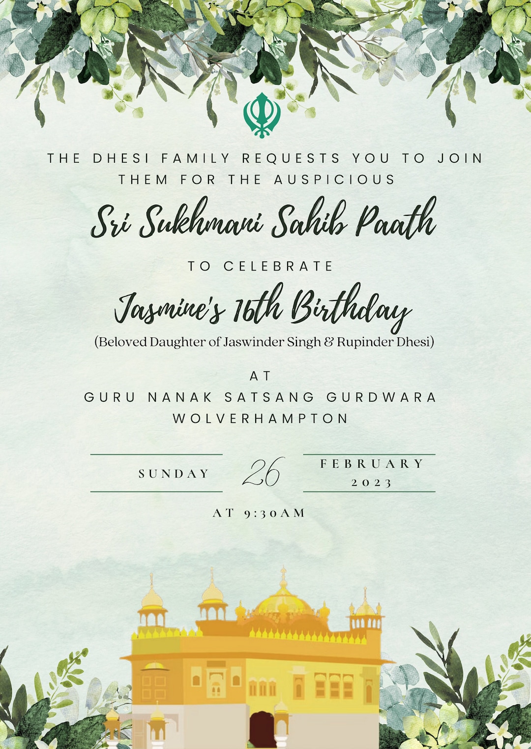 Green Floral Shri Sukhmani Sahib Path Invitation Template Path First ...