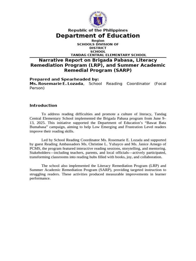 2022 Brigada Pagbasa Narrative - Republic of the Philippines Department ...