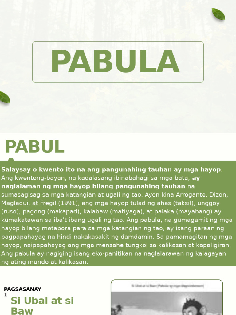 Pabula Powerpoint Presentation for Grade 1 | PPTX
