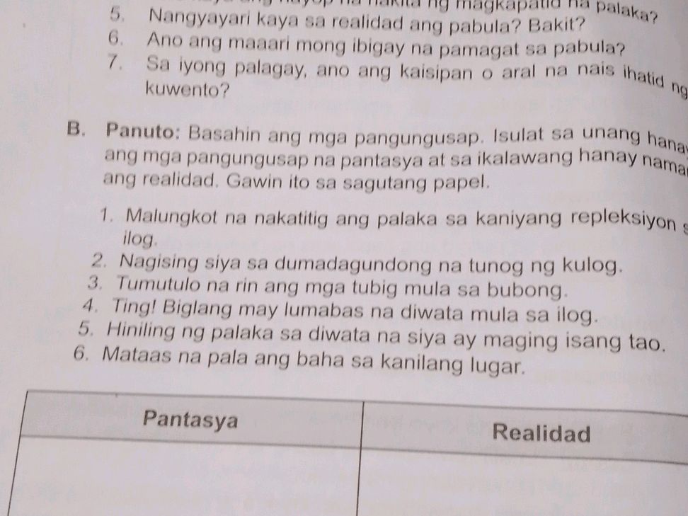 5. Nangyayari kaya sa realidad ang pabula? | StudyX
