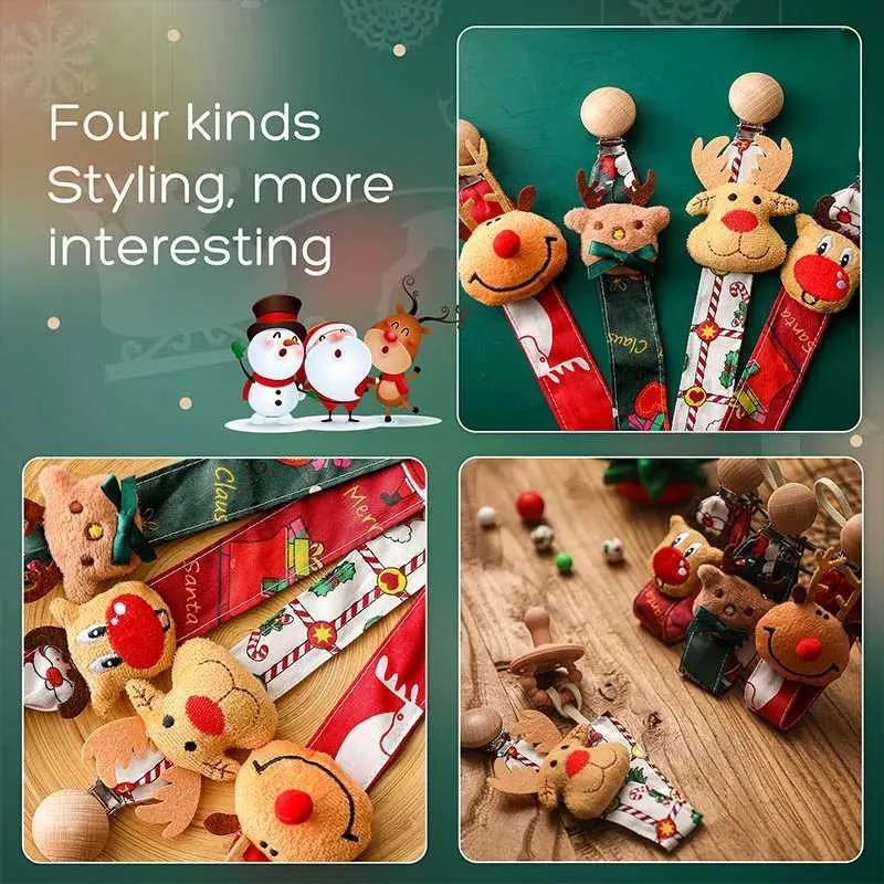 Christmas Elk Pacifier Chain: 5-Pack Baby Teething Toys with Gift Box ...