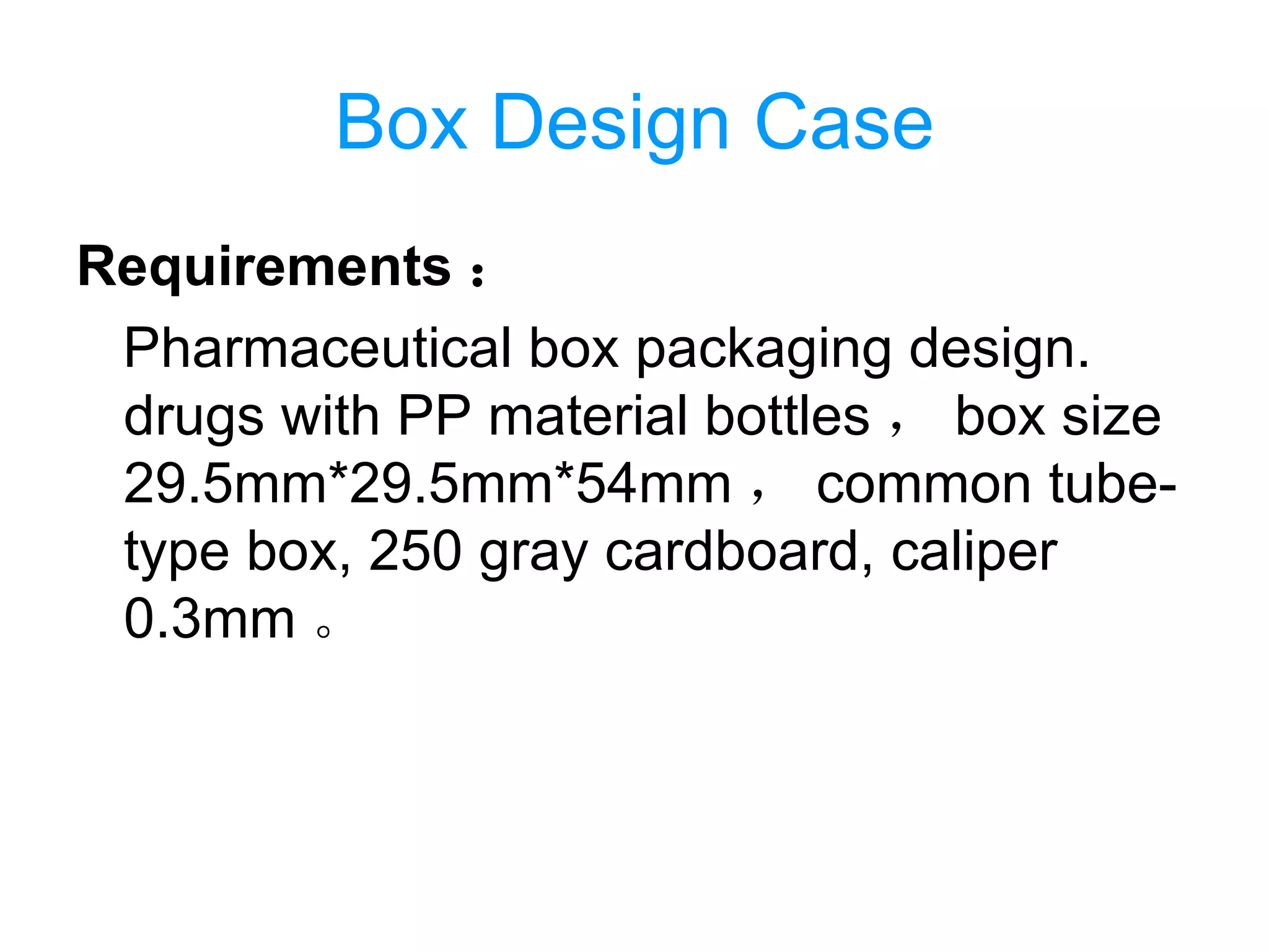 Typical demonstration for the design of a simple carton box used to ...