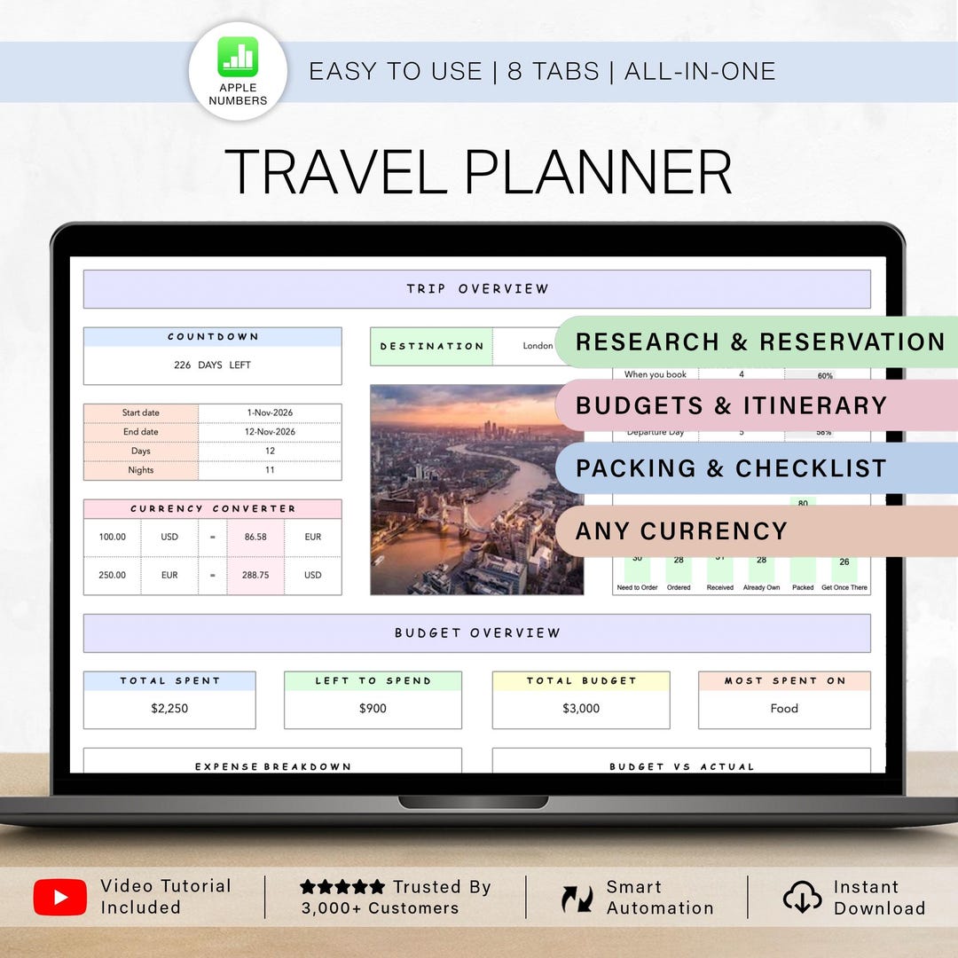 Apple Numbers Travel Planner Travel Itinerary Template Trip Vacation ...