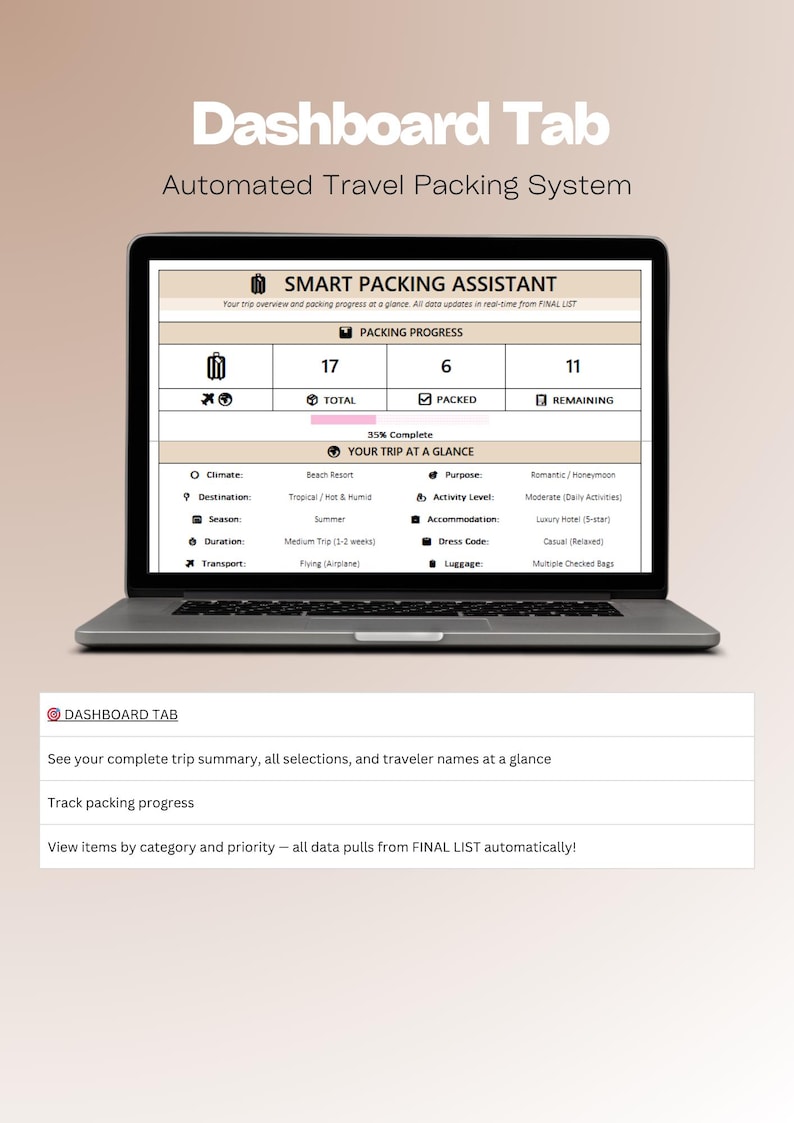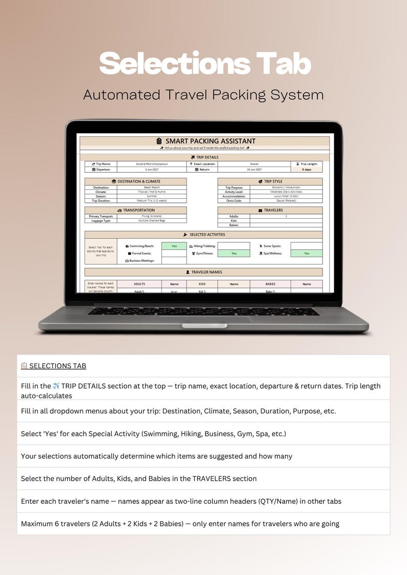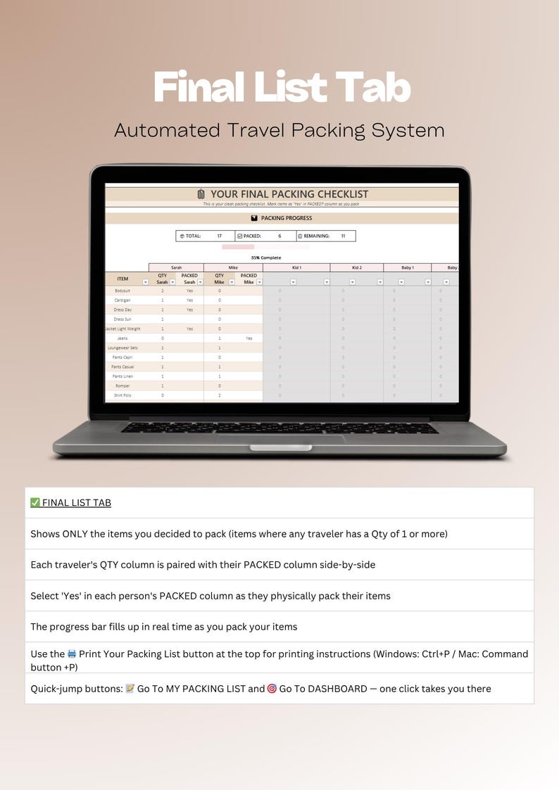 Smart Travel Packing List Excel Tool | Fully Automated & Customizable ...