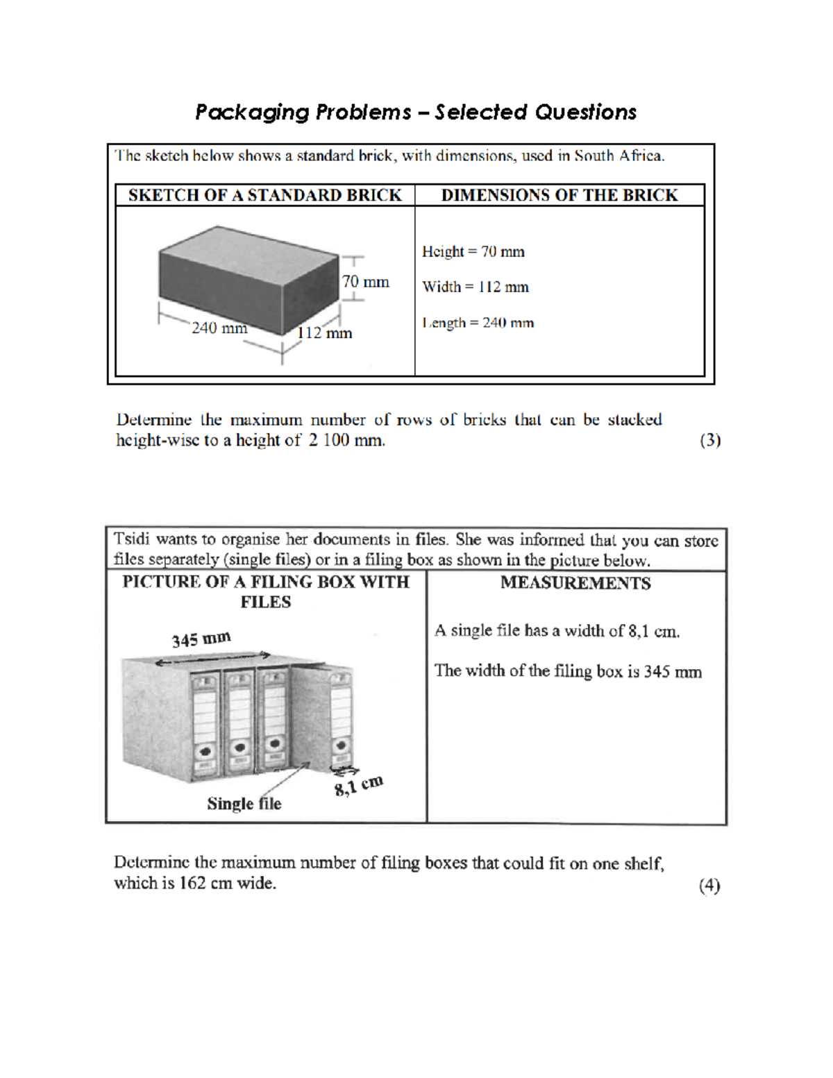 Copy of WORKSHEET I-B Mathematics of Packaging.pdf - WORKSHEET I-B ...