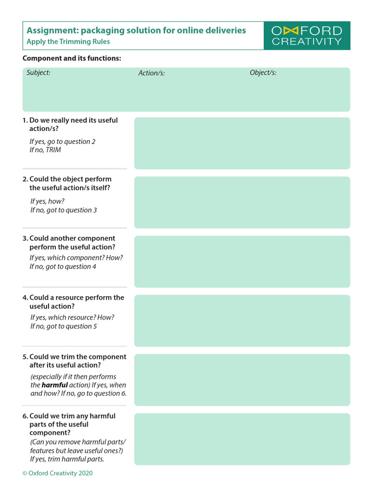 A4 Worksheet - Packaging - Trimming Questions A4 WORKSHEET EDITABLE | PDF