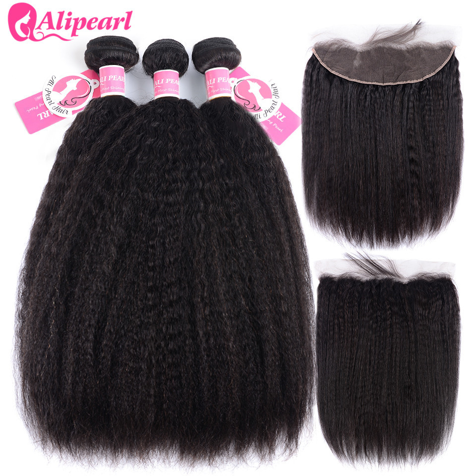 Yaki Straight Human Hair Bundles With Lace Frontal 13x4 -Alipearl Hair
