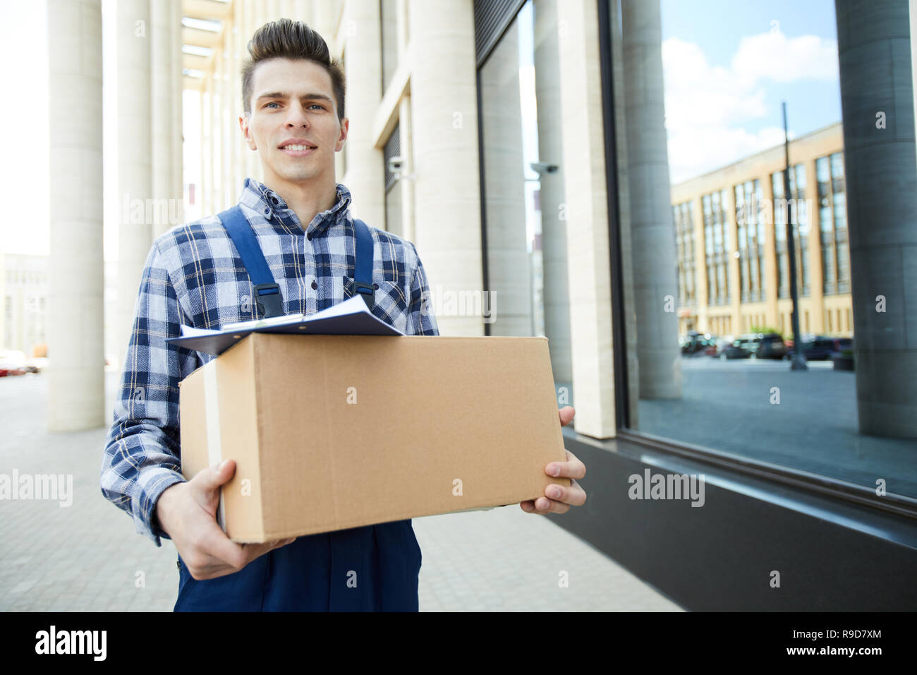 Delivery man carrying package Stock Photo - Alamy