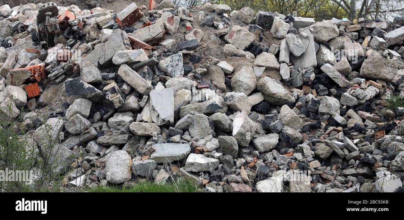 A pile of concrete and stone rubble of gray color. Construction waste ...