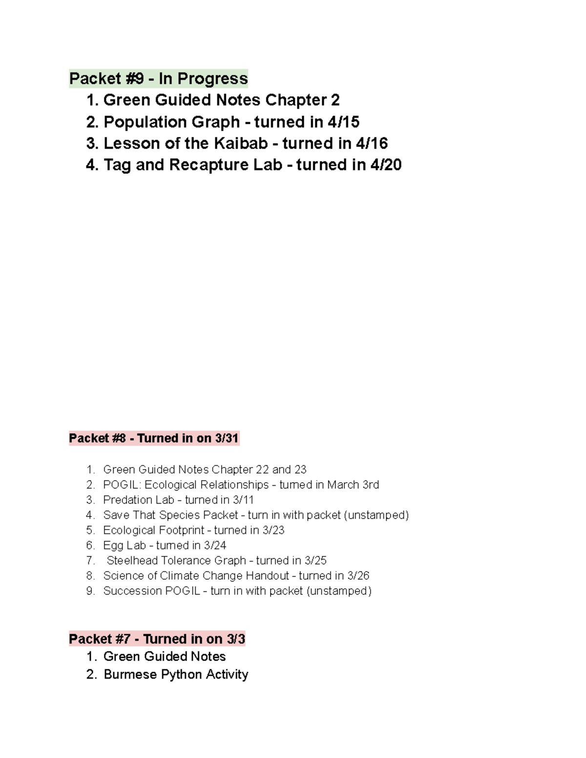 Packet List - Hansen - lkjhgfdhjk - Packet #9 - In Progress 1. Green ...