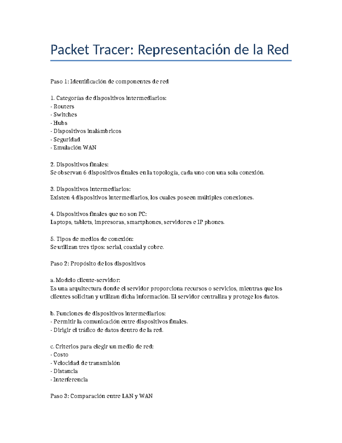 Packet Tracer: Análisis de la Red y Componentes Esenciales - Studocu