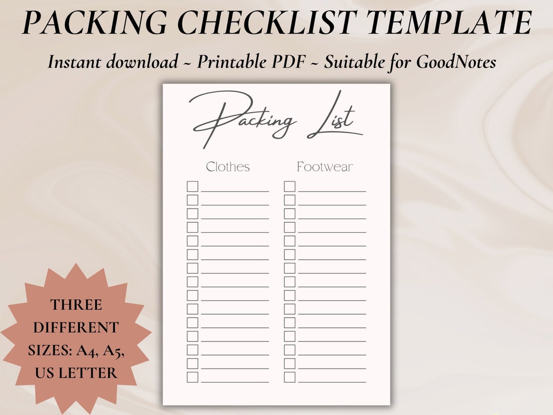 Packing Checklist Template | Instant Download | Digital and Printable ...