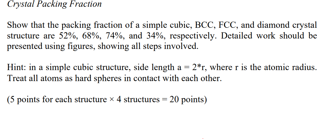 SOLVED: For the crystal structures in the table: a) Derive the packing ...