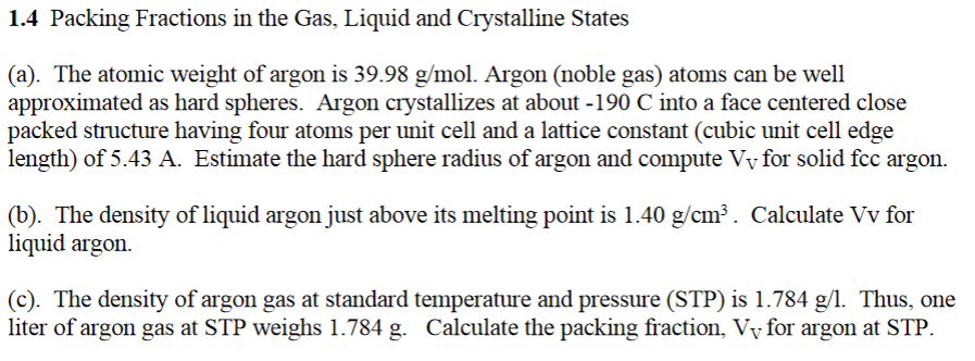 Solved 1.4 Packing Fractions in the Gas, Liquid and | Chegg.com