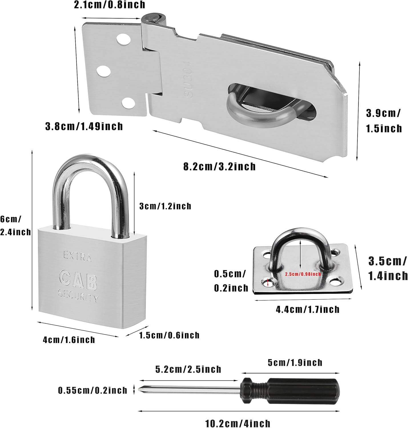 2Pcs Stainless Steel Gate Lock Hasp, Safety Packlock Clasp Lock Set ...