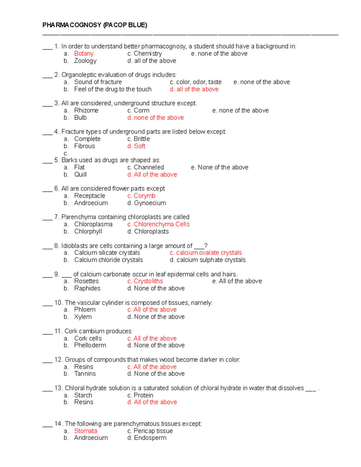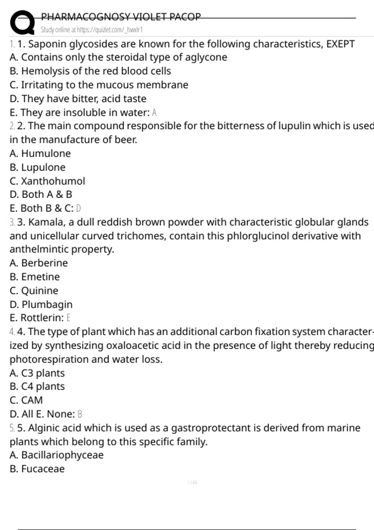 Pharmacognosy Study Guide (PACOP BLUE) - Key Concepts & Evaluations ...