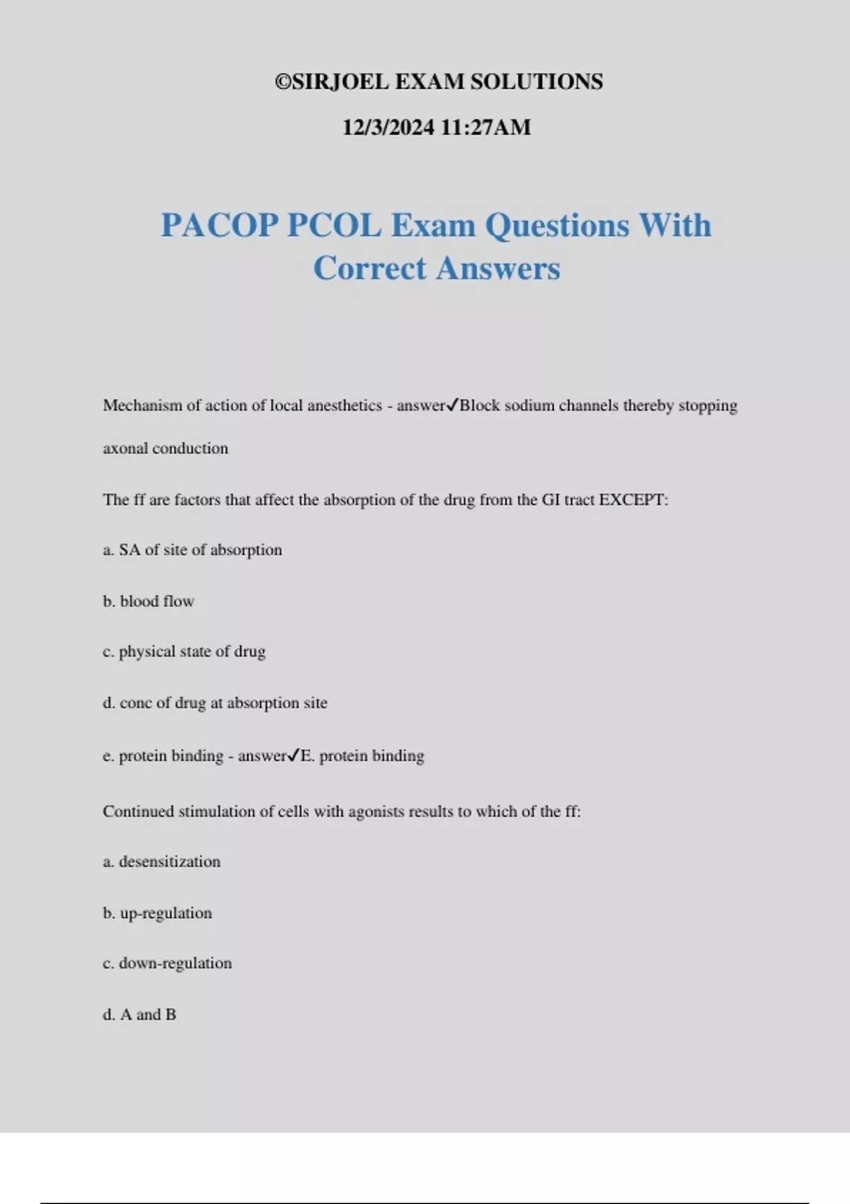PACOP PCOL Exam Questions With Correct Answers - PCOL - Stuvia US
