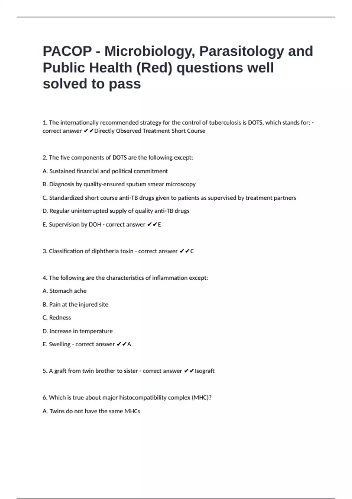 PACOP - Microbiology, Parasitology and Public Health (Red) questions ...