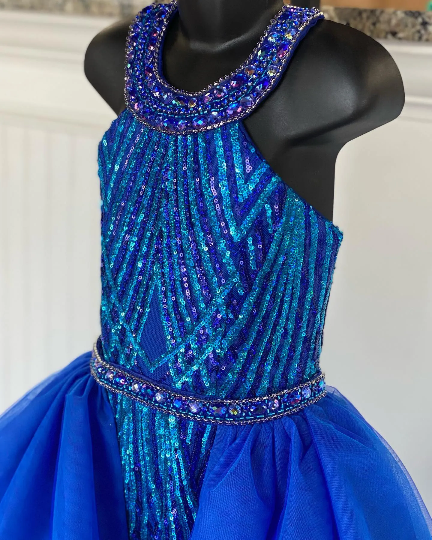 Rosie Beading Little Miss Pageant Dress: Sequin Royal Blue Long Prom ...