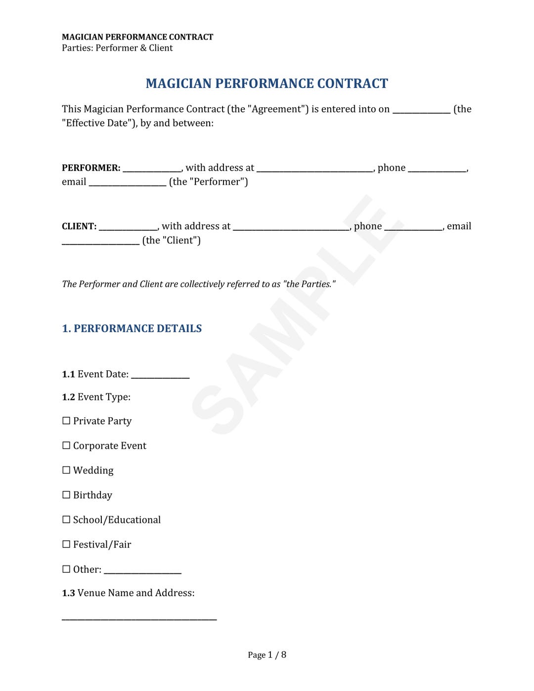Magician Contract, Performance Agreement Template | Entertainment ...