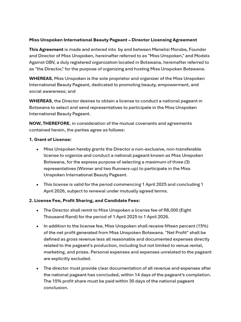 Miss Unspoken International Beauty Pageant | PDF | Mediation | License