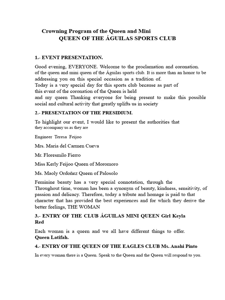 Coronation Program of The Queen and Mini Queen of The Águilas Sports ...