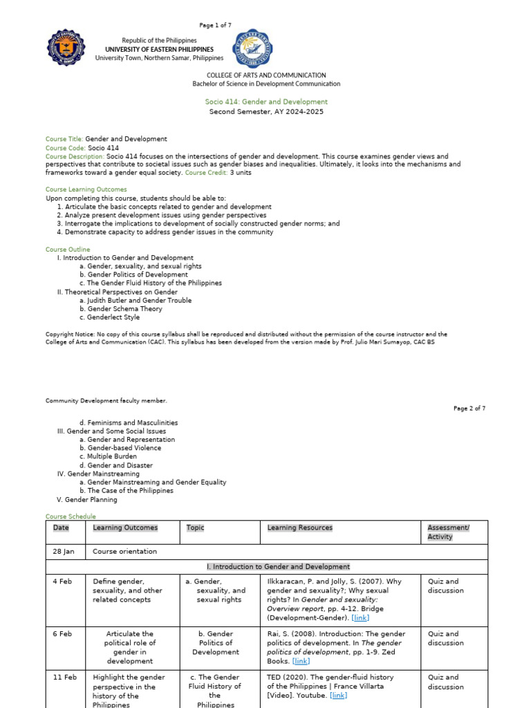 Gender & Development - SS 2024-2025 | PDF | Gender | Gender Studies