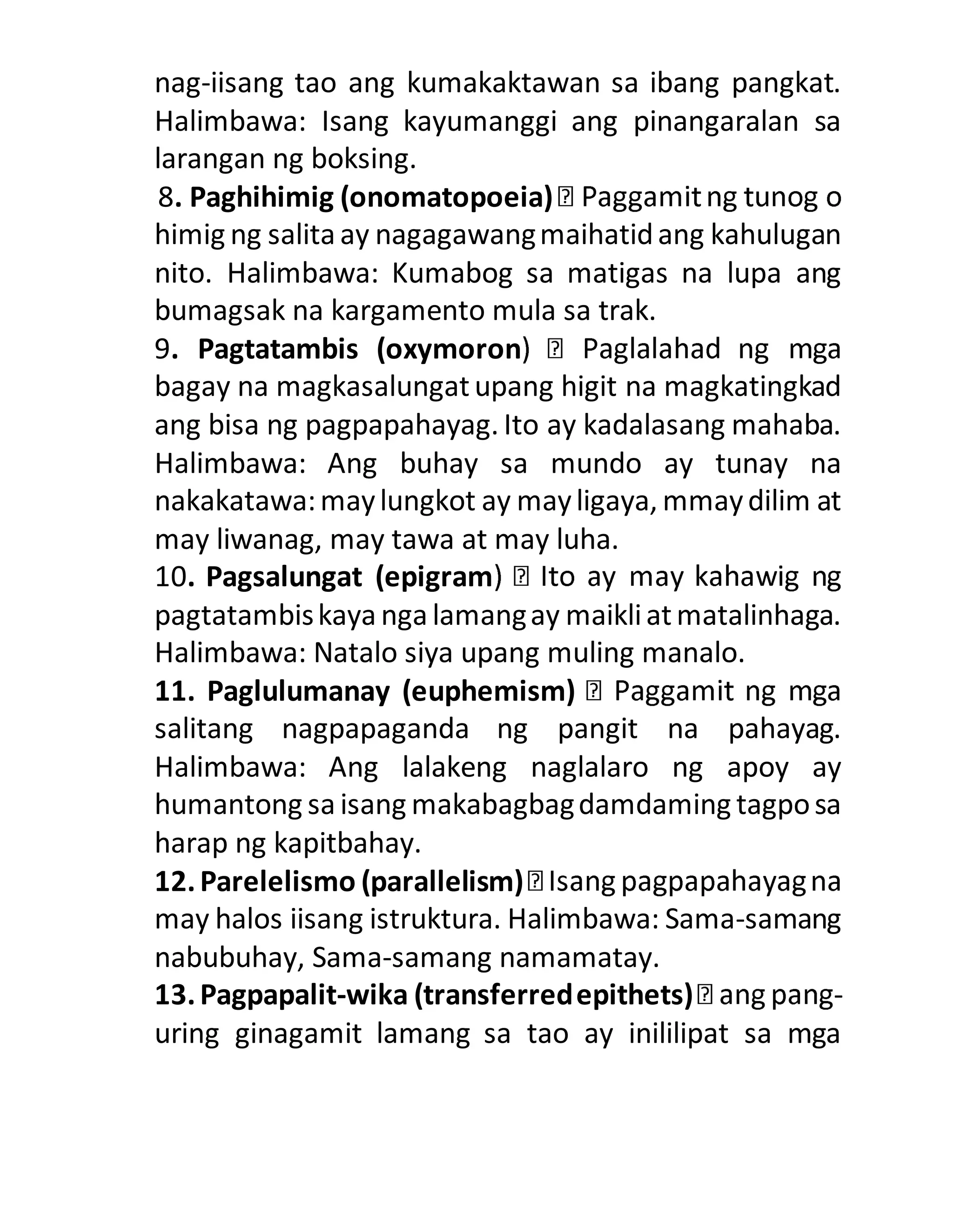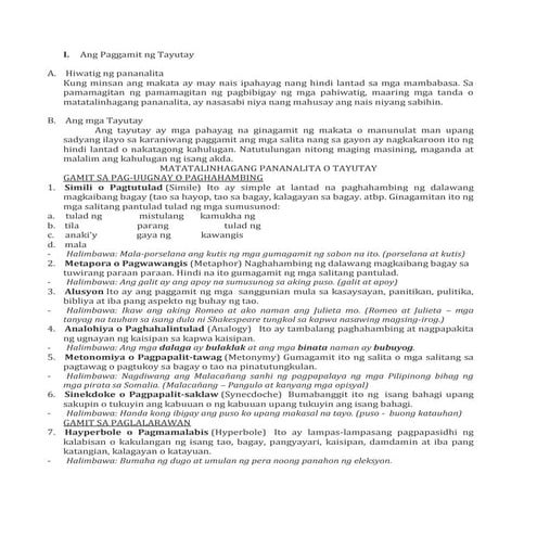 (DOC) Mga Karaniwang Uri at Halimbawa ng Tayutay