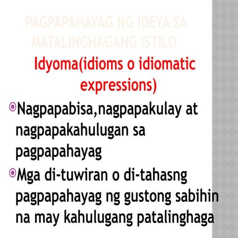 IDYOMA AT TAYUTAY - IDYOMA Idyoma Ito ay may di-tuwiran o di-tahasang ...