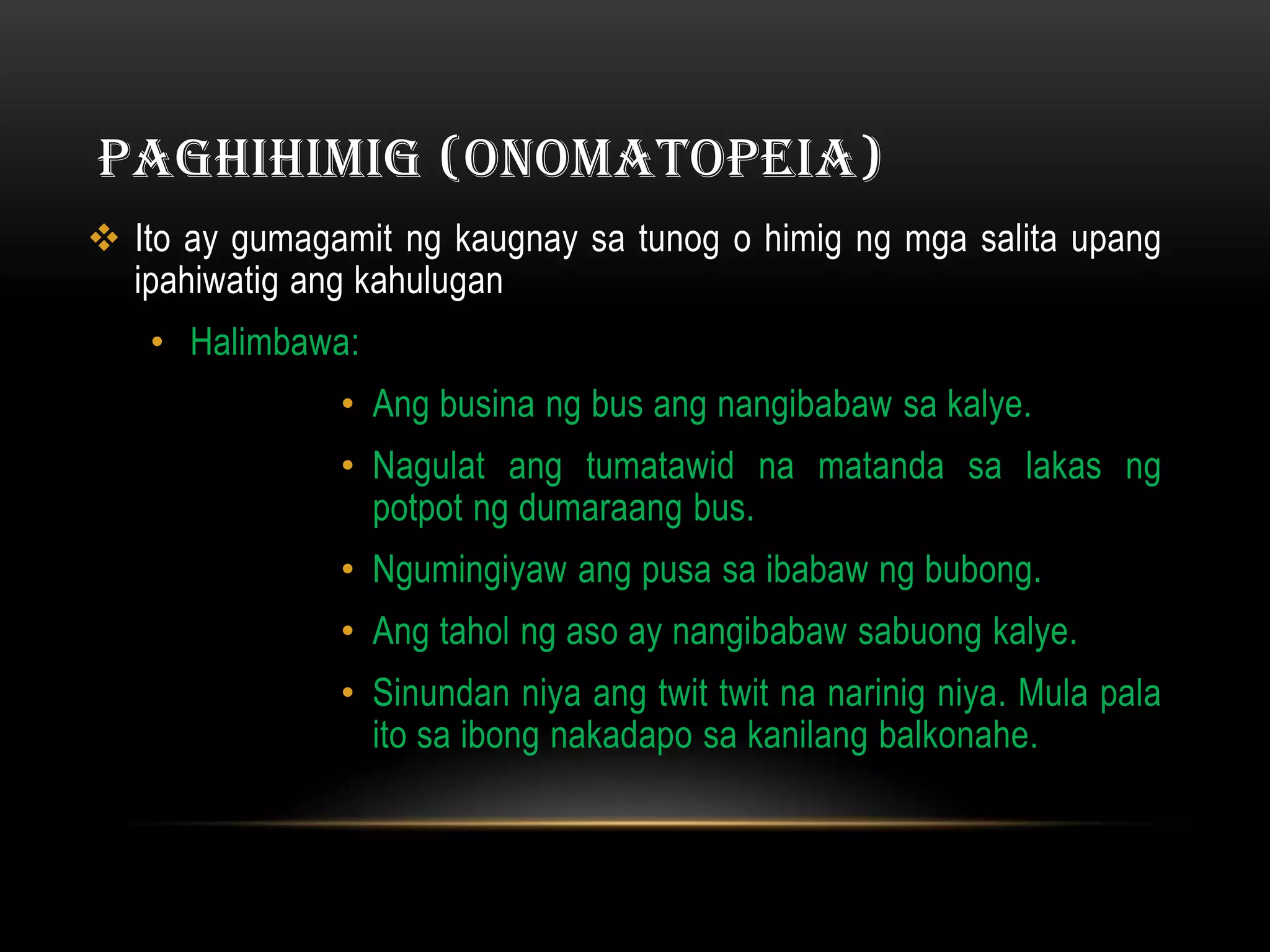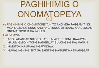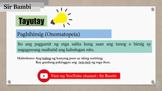 Tayutay: Paghihimig(Onomatopeia), Pag uulit (Alliteration) - YouTube