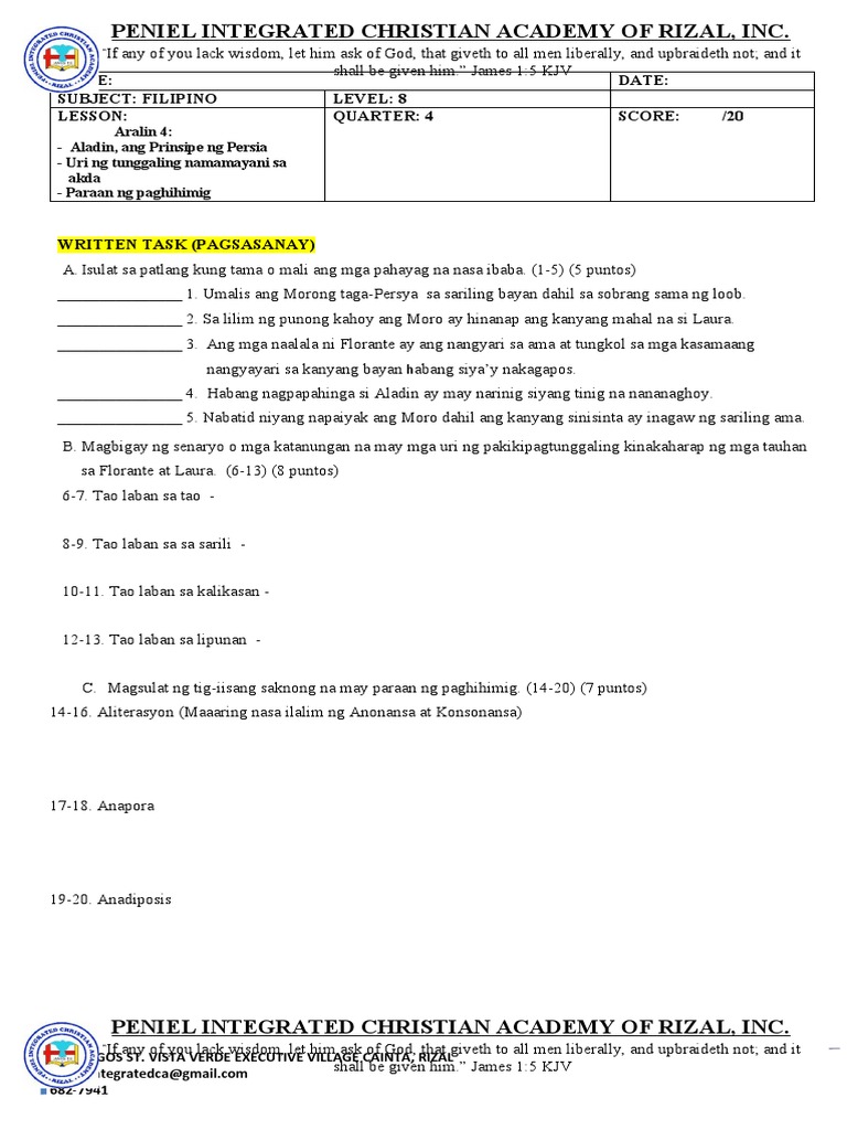 WSFILIPINO8.ARALIN4 - Aladin, Ang Prinsipe NG Persia - Uri NG ...