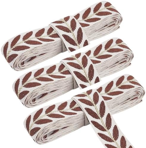 3 Rolls 1 Inch Brown White Jacquard Embroidered Ribbon Leaf Pattern ...