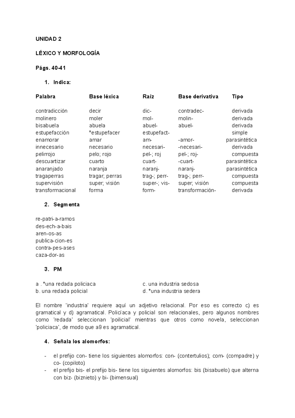 Unidad 2 Léxico y morfología - UNIDAD 2 LÉXICO Y MORFOLOGÍA Págs. 40- 1 ...