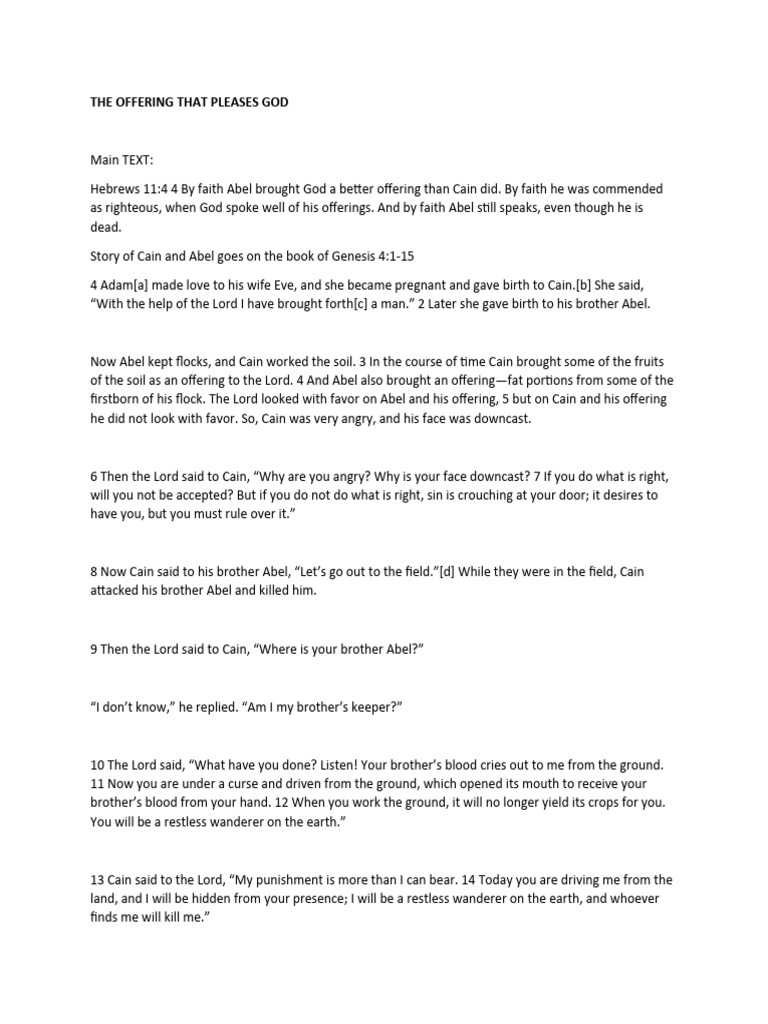 The Offering That Pleases God | PDF | Cain And Abel | Religious Belief ...
