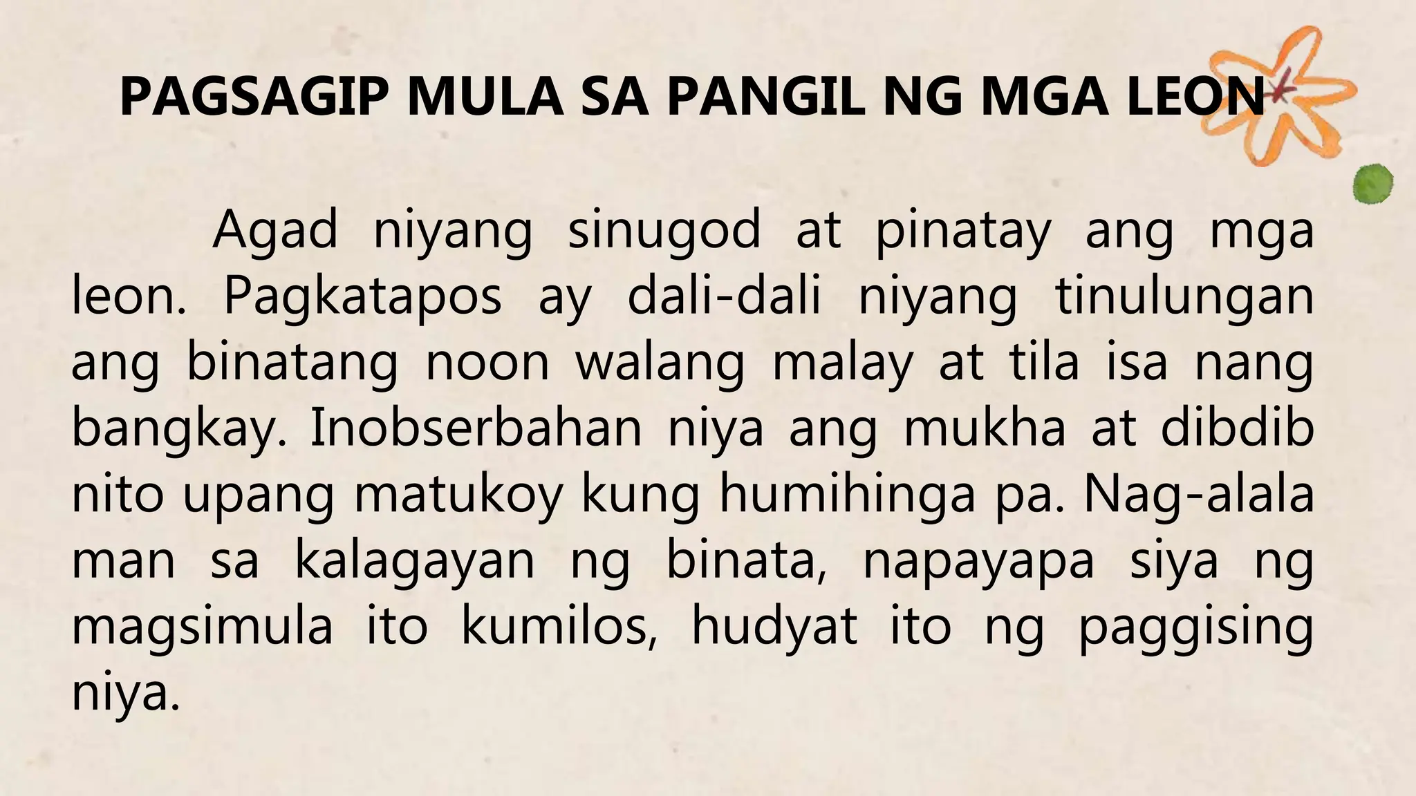 ipaliwanag itong larawan pamagat"PAGSAGIP MULA SA PANGIL NG LEON ...