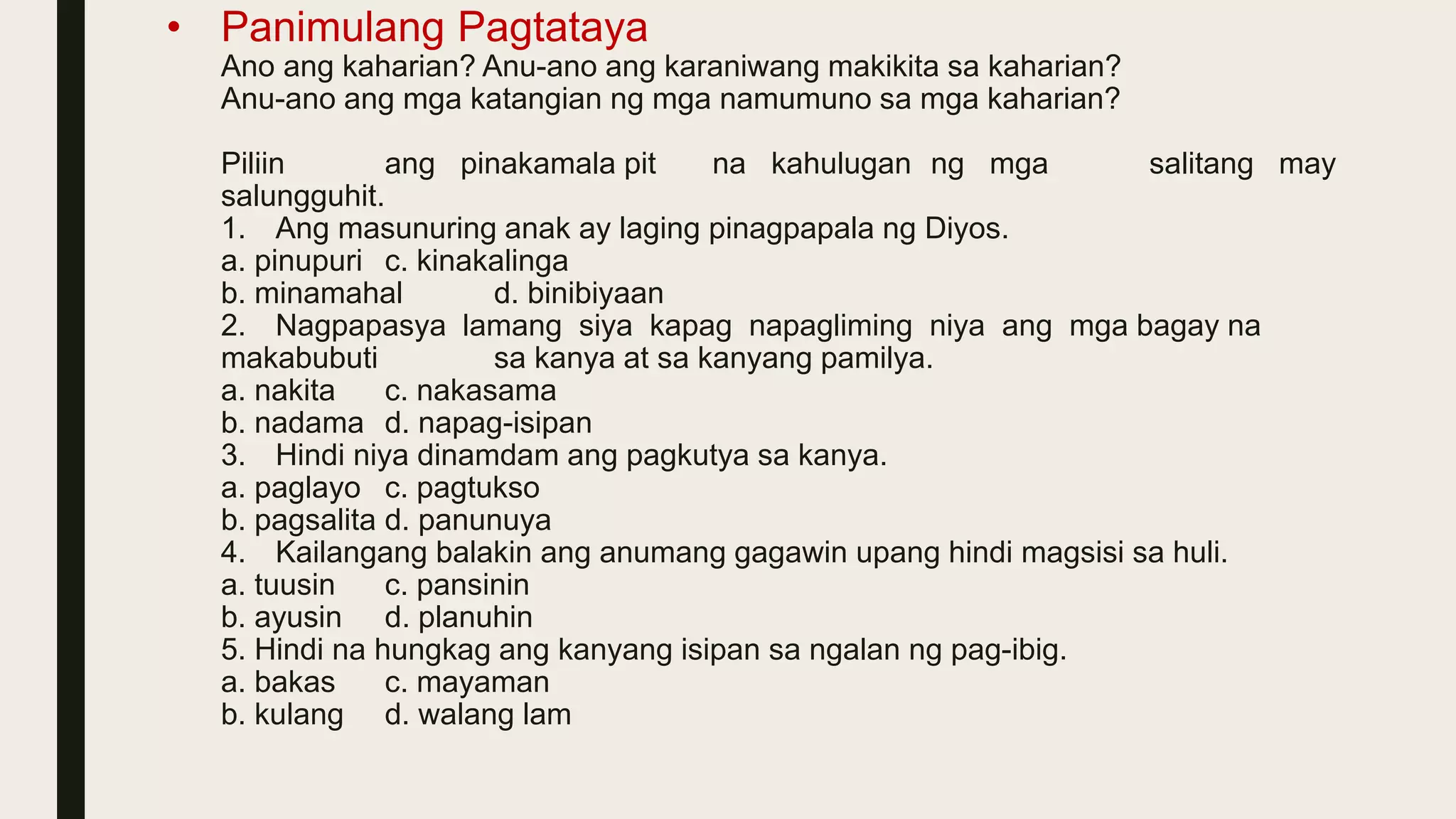 Gawaing Pag-unawa sa mga susing salita | StudyX