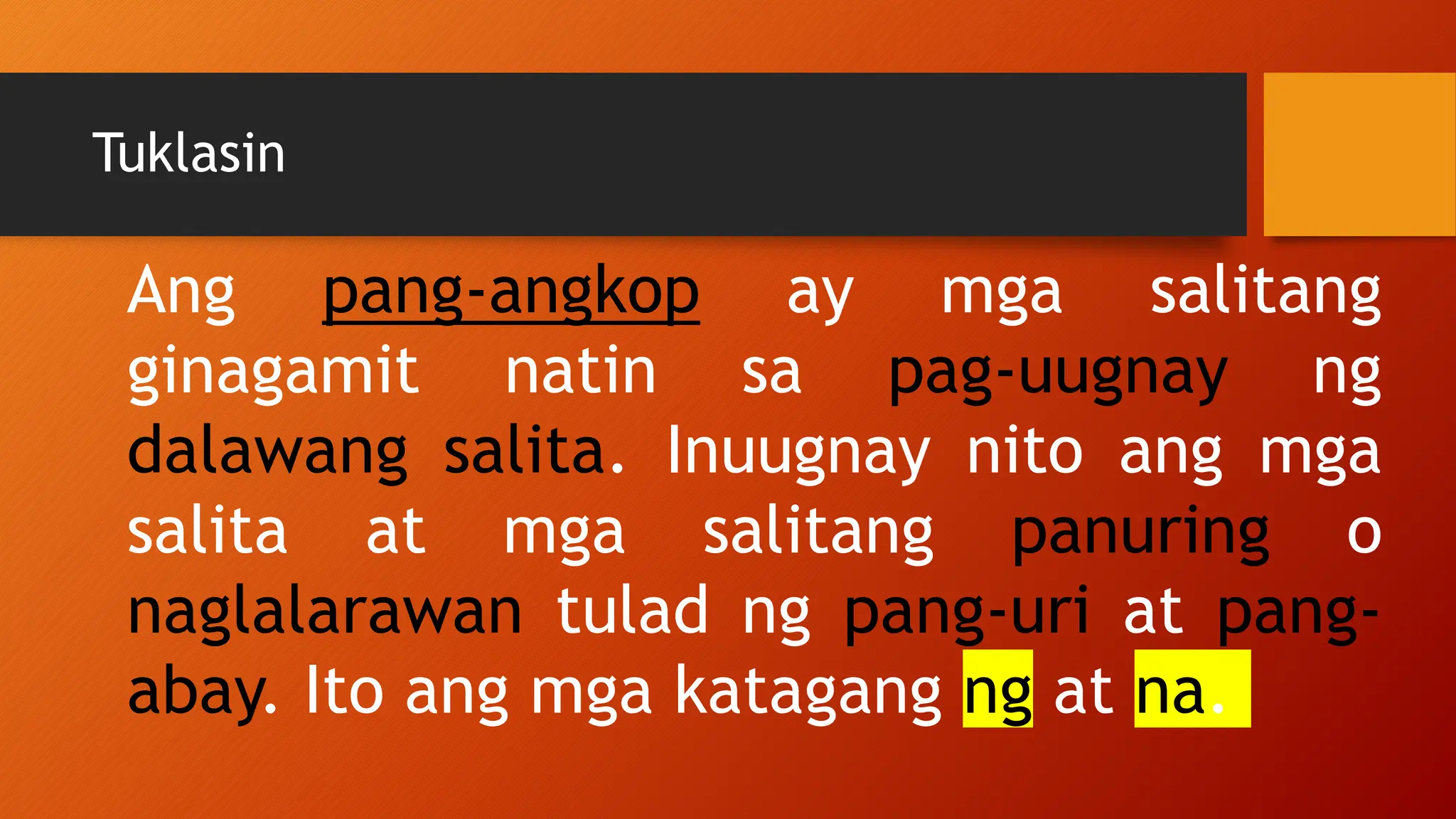 Ang pang-angkop ay mga salitang ginagamit natin sa pag-uugnay ng ...