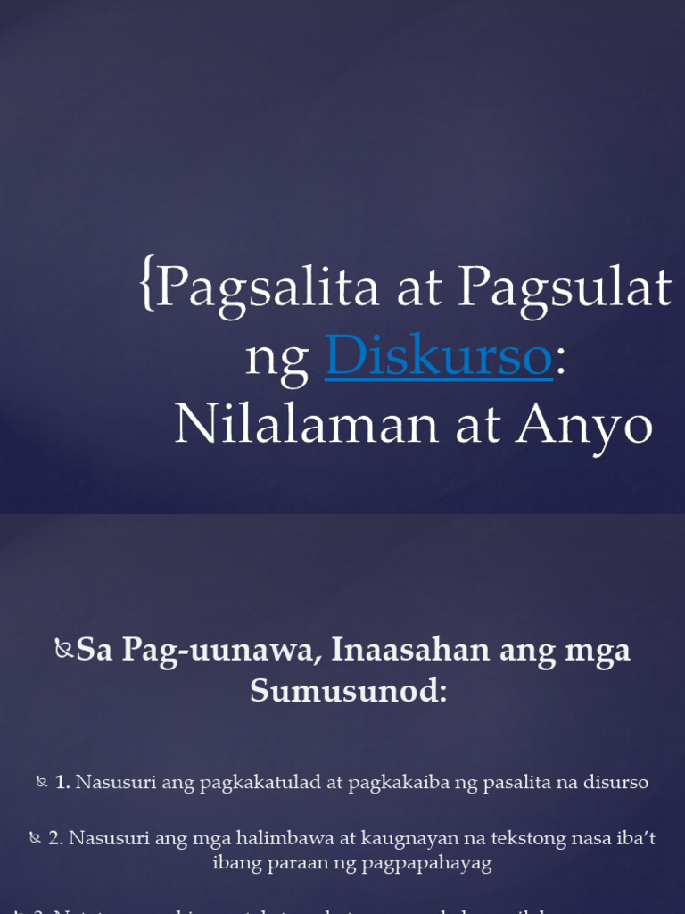 Pagsalita at Pagsulat Na Diskurso - JM | PDF